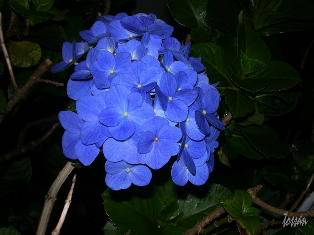Uia!Lindas fotos Tossan!Principalmente a primeira e a terceira.Flores azuis são mais difícies de achar,né?Esta folha é um símbolo do outono.Um abraço!